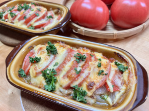 簡単絶品レシピ「トマトグラタン」を教わります。