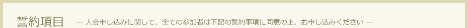 - 自然災害や荒天、疫病等の不慮の災害、事件、事故等により、大会をやむを得ず中止した場合、参加賞及び大会パンフレット等の大会資料は送付しますが、参加費の払い戻しはできません。