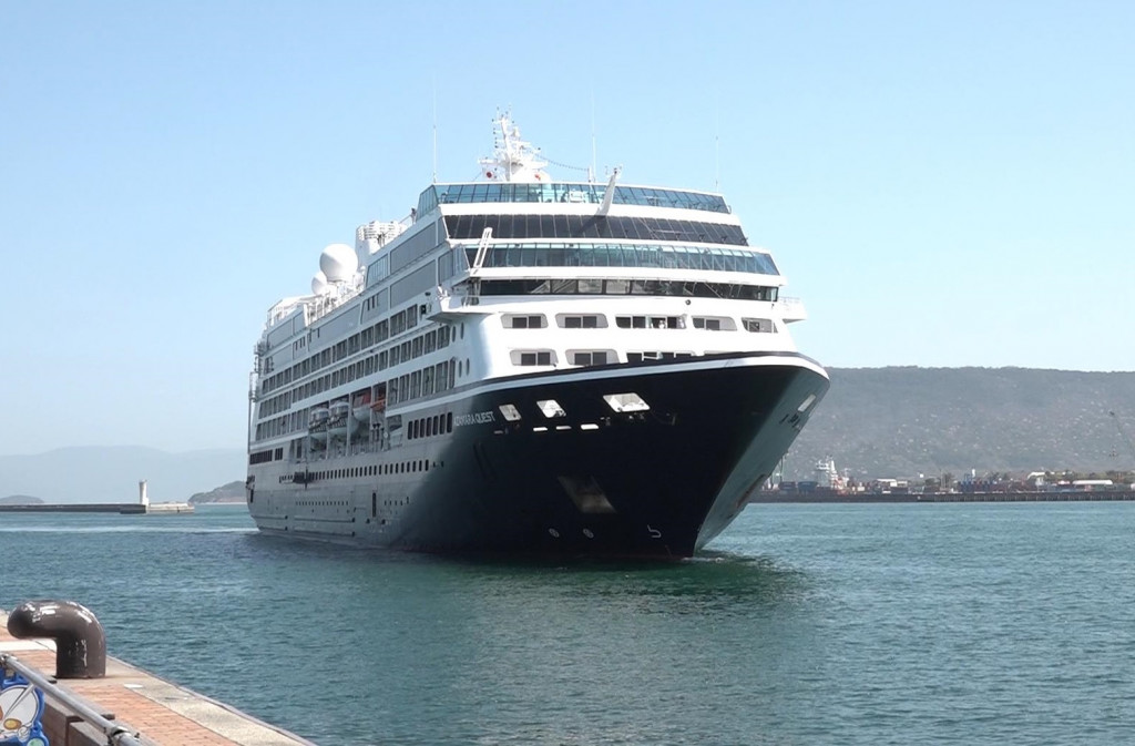 この日午前11時半前、港に姿を見せたのは、アメリカの企業が運航する3万トン級のクルーズ船「アザマラ・クエスト」です。
