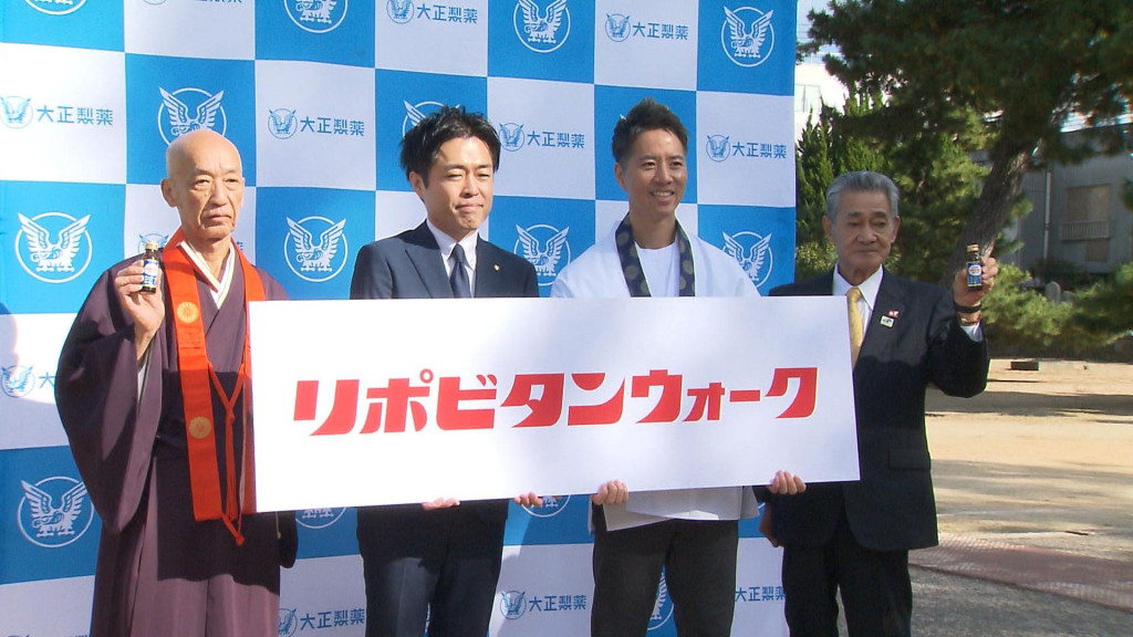 19日、善通寺で行われた発表会には大正製薬の「ファイト、一発!」のCMでもおなじみ、俳優のケイン・コスギさんがお遍路姿で登場。シニア世代に負担の少ないウオーキングの仕方を紹介し、運動の習慣化を呼びかけました。