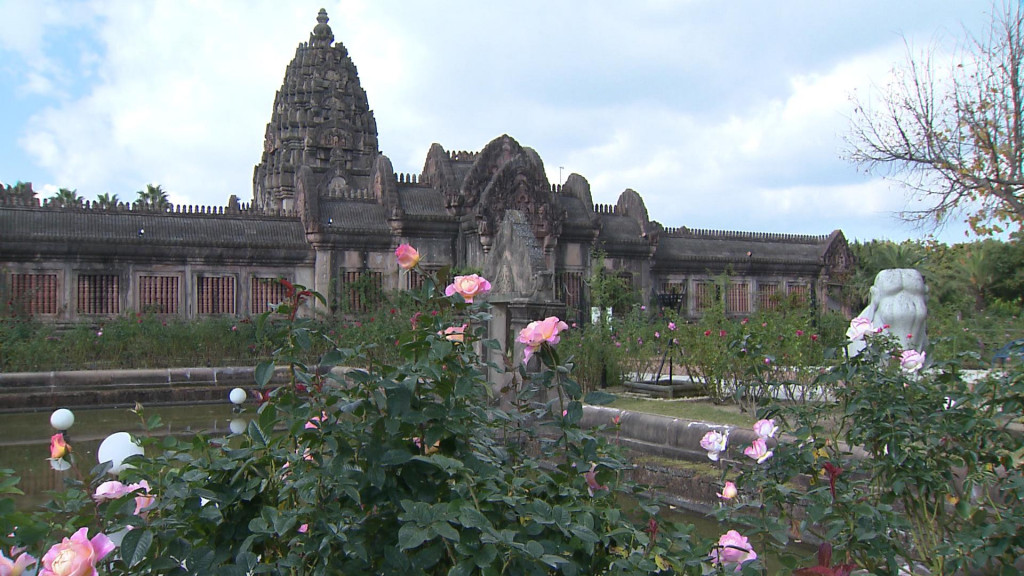 「ピンク・パラダイス」はカンボジアの遺跡を模した建物があるエリアに植えられています。