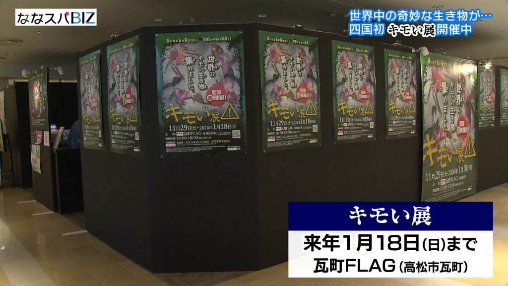 奇妙な姿をした〝キモい〟と言われる生き物たち。ただ、どこか愛らしい。そんな生き物たちを世界中から集めた人気のイベントが、高松市の商業施設・瓦町FLAGで開かれています。四国では初開催となる「キモい展」です。