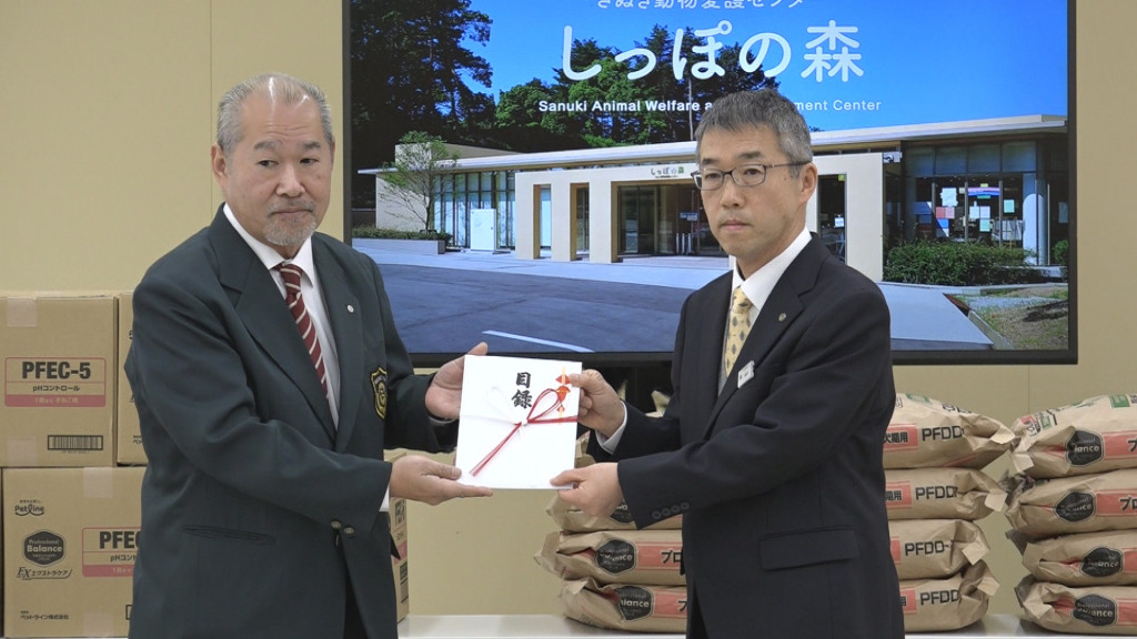 高松西ロータリークラブは4月7日、高松市のさぬき動物愛護センター「しっぽの森」にペットフードを贈りました。