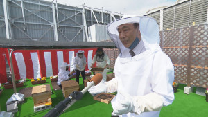 関係者およそ30人が参加した式典では、ミツバチの入った巣箱を開け、プロジェクトがスタートしました。