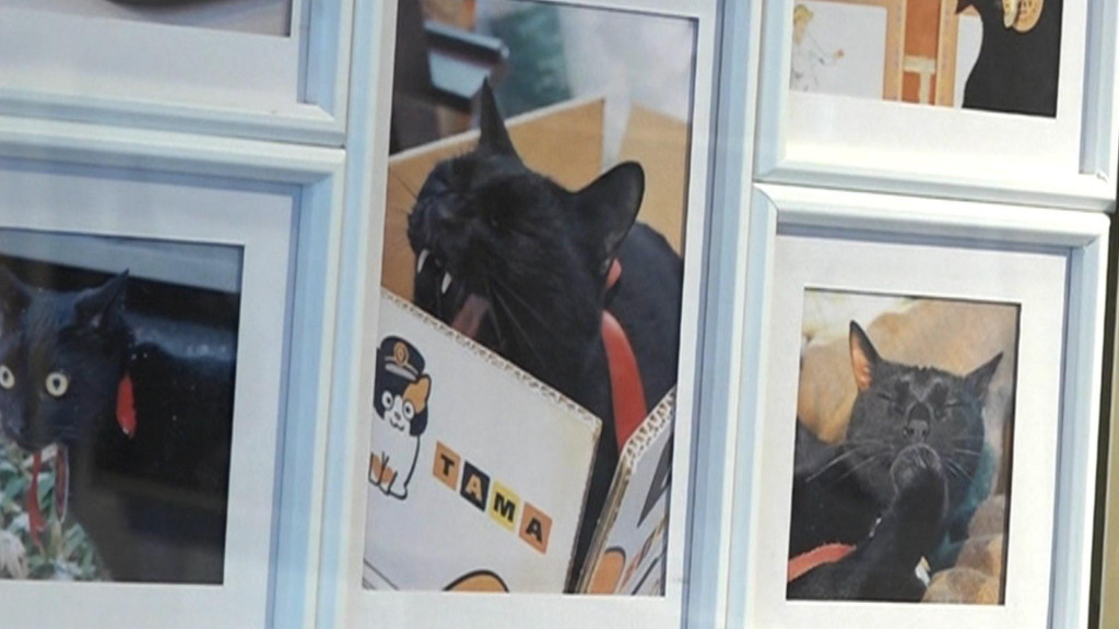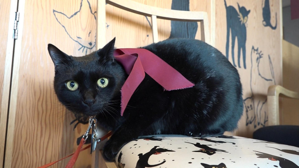 2月22日の猫の日を前に21日、岡山市の夢二郷土美術館で、看板ネコ「黒の助」の写真展が始まりました。3月31日まで。