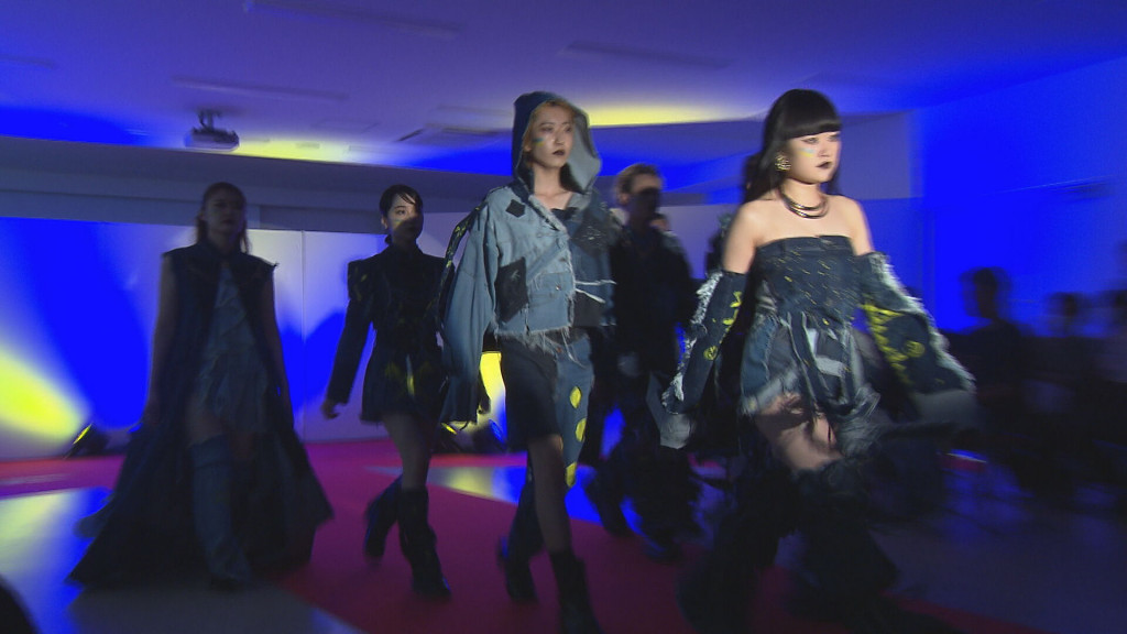 工場などで大量に捨てられるデニムの廃材などから仕立てた衣装を披露するファッションショーが8月12日、岡山市内で開かれました。