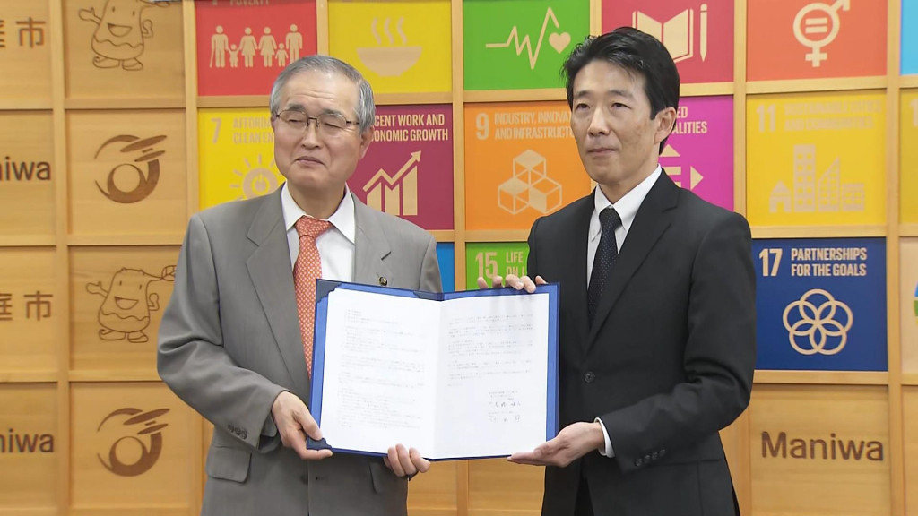 締結式には、太田昇市長や三菱UFJ信託銀行の髙橋昭人アセットマネジメント事業部長らが出席。協定書に署名をしました。