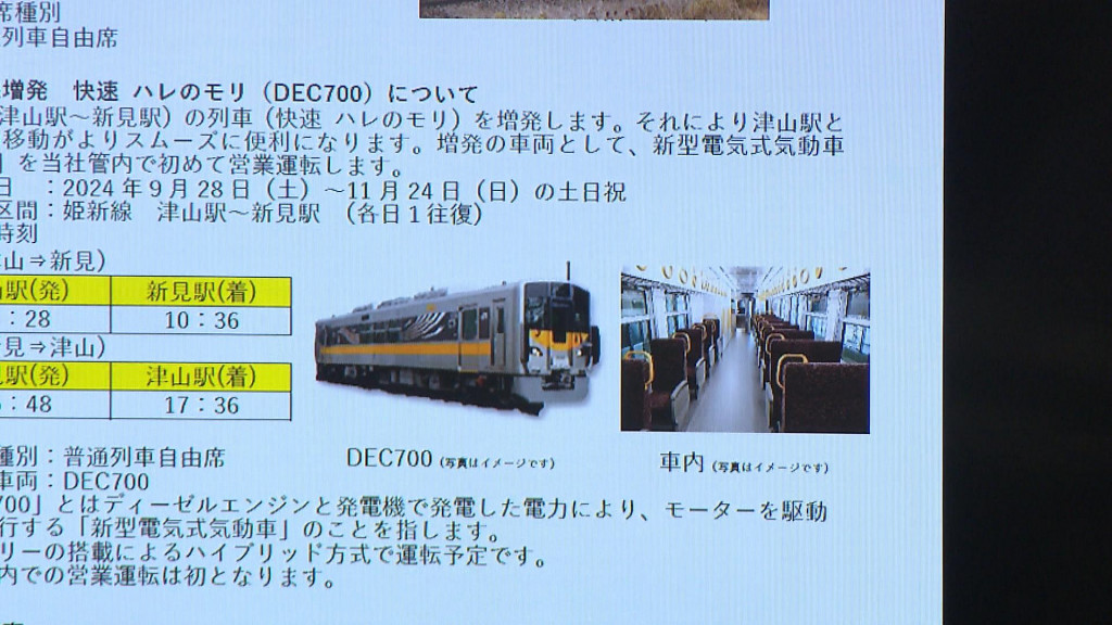 津山線と姫新線の岡山-津山、津山-新見間では快速「森の芸術祭ライナー」「ハレのモリ」として1日1往復から2往復し、津山線は直通運行します。