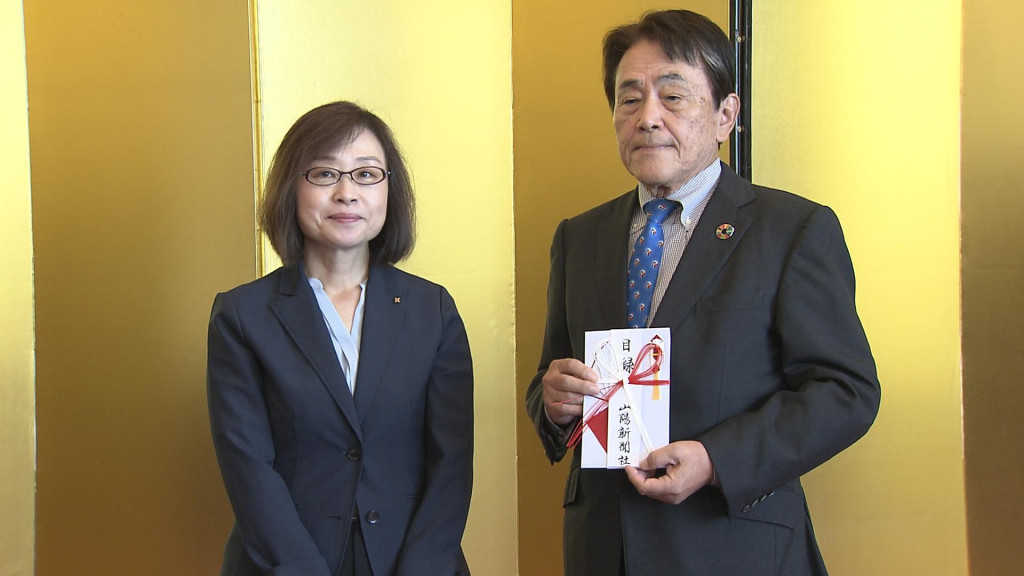 贈られたのは14万5600円で、大会運営委員長を務めた山陽新聞社営業局の清水玲子事業本部長から、岡山県ゴルフ協会の大塚祥文会長へ目録が手渡されました。