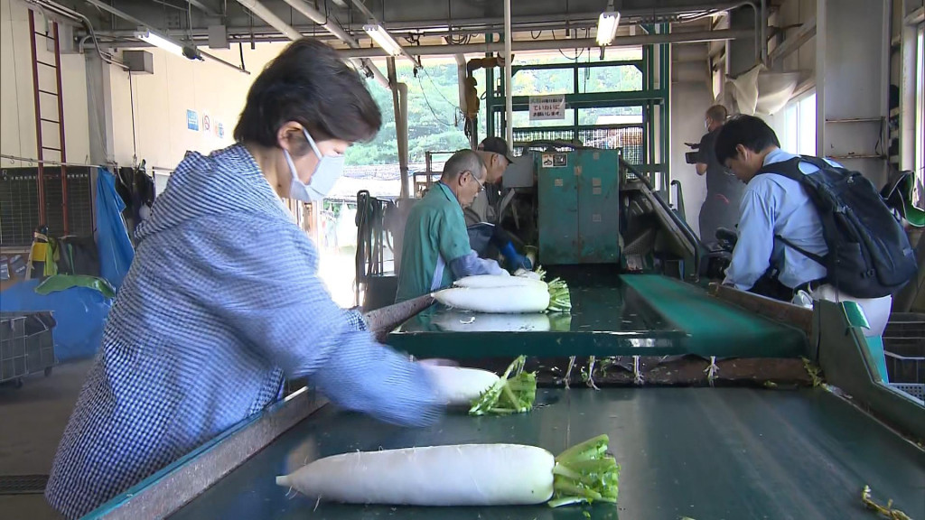 真庭市の選果場で「ひるぜん大根」の本格的な出荷作業が始まりました。