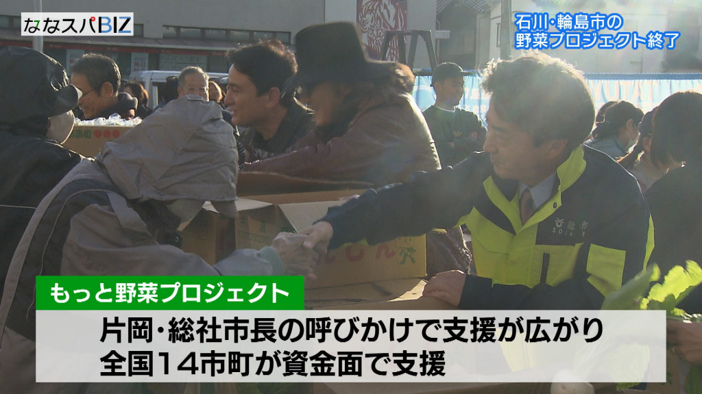 昨年の元日に巨大地震、その9カ月後に記録的な大雨に見舞われた石川県輪島市で、大きなダメージを受けた被災者に新鮮な野菜を格安で提供するプロジェクトが総社、赤磐市など全国14の市町の協力で進められてきましたが、一定の役割を果たしたとして11月22日に終了しました。