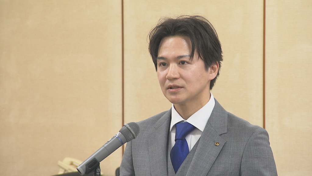 2月8日の津山市長選挙で、岡山県内最年少となる40歳で初当選を果たした光井聡さんが25日、新市長として市役所に初登庁しました。