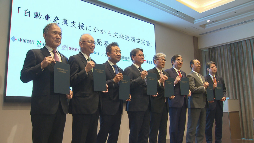 岡山市の中国銀行を含む8つの地方銀行は2月27日、自動車産業の支援を目的に連携協定を結びました。