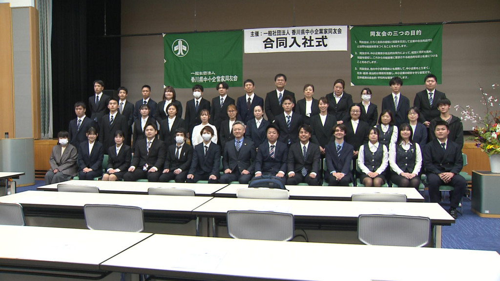 高松市ではこの日、香川県中小企業家同友会による合同入社式が開かれ、地元20社の新入社員38人が出席しました。