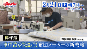 傑作選として、寝具の製造・販売を手掛ける四国繊維販売を特集した。車中泊専用のオーダーメイド布団で売り上げを伸ばしている同社は、ペットを連れてのレジャーや災害対策など、ニーズが高まる車中泊に、家庭と同じ寝心地を提供するよう工夫を凝らす。番組では、主力の家庭用布団を効率的に大量生産する驚きのシステムにも迫った。